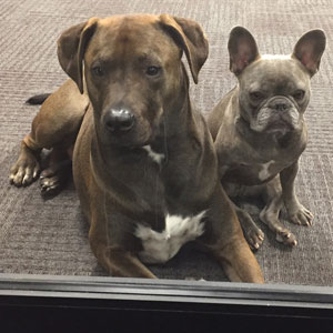 For the most part, all the dogs you’d consider regular employees here (around 6 or 7 on any given day) are quiet and well-behaved. They happily walk the halls, nap on doggie beds or gaze through windows as they mull over trends in self-storage. Sociable by nature, dogs are simply happy to be around people—especially their people. So we know it’s good for dogs, but what’s the impact on people and the workplace?