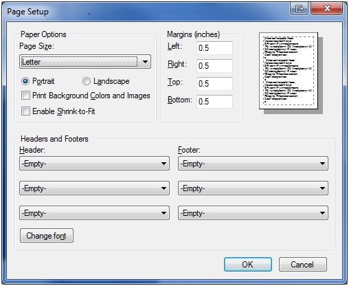 When printing, HTML forms use the web browser features built into Windows, just like printing from Microsoft Internet Explorer. The page margins are determined by your computer web brower settings, not from SiteLink. We provide a link within the editor (under the File>>Page Setup menu item) to allow you to change the printed margins. The SiteLink template forms are setup to e 0.5 inch margins for left and right borders.